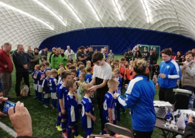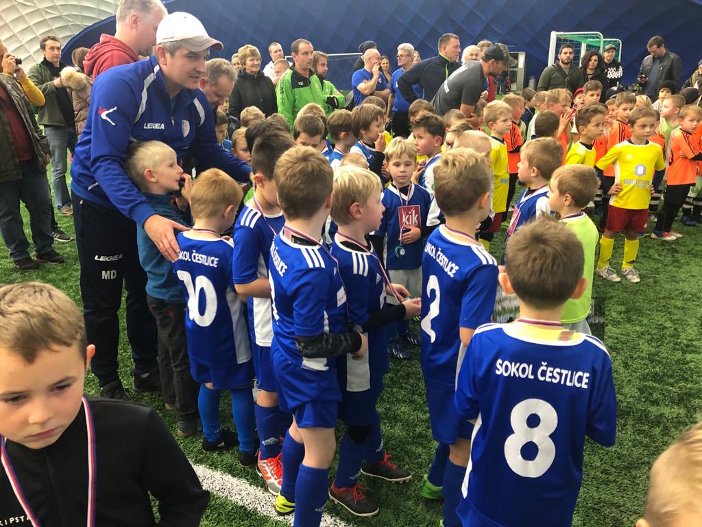 O týden později (v neděli 17.11.2019) jsme se vrátili na místo činu-opět nafukovačka v Říčanech na turnaj ročníku 2013, kterého se tentokrát zúčastnili jen děti z MINI přípravky, primárně co nebyli na turnaji o předešlém víkendu. Hned v prvním zápase nás čekal soupeř Husinec-Řež a zápas to byl pro nás velmi smolný. Naši kluci defacto nepustili soupeře do žádné akce, ale góly se nám nepodařilo vstřelit, jelikož jsme buďto netrefili branku soupeře, nebo nám šanci zlikvidoval výborný brankář soupeře. Z ojedinělé akce soupeře jsme pak inkasovali a první zápas prohráli. Následoval zápas s Viktorkou Žižkov a výhra 2:0. V dalším zápase jsme se poměřili s týmem Zelenče a byla z toho remíza 2:2, kdy jsme ale góly obdrželi až v závěru. Následoval poměrně vyrovnaný zápas s domácím týmem Rado, kdy až v samotném závěru, po pro mě sporném verdiktu rozhodčího Radošky vyhráli 3:2. Následoval zápas s AKF Sadská (výhra 3:1) ve kterém kluci byli po celé utkání lepší a opět jen neproměňováním šancí nevyhráli vyšším rozdílem. V předposledním zápase jsme utkali s celkovým vítězem turnaje Radonicemi a byla z toho prohra 4:0, nicméně v brance došlo k rošádě, kdy si chtěli zachytat i ostatní kluci (do té doby chytal Kristian Senaj a vypadá to na dalšího brankáře na kterého e budou moci kluci spolehnout). Myslím si, že pokud bychom nastoupili v klasickém složení, tak bychom i tohoto soupeře více potrápili. Nicméně i tyto turnaje jsou od toho, abychom zkoušeli více možností a děti si vyzkoušely i jiné posty. V posledním zápase, opět s novým brankářem ? jsme se utkali se Škvorcem. I v tomto zápase to bylo poměrně jednoznačné a kluci vyhráli 3:1. Je pravdou, že v posledním zápase už byli kluci docela unavení a tak bylo dobře, že je již konec turnaje. Celkově 4.místo za 10 bodů a skóre 12:12. V tomto turnaji klukům nechyběl zápal pro hru, bojovnost a množství šancí na vstřelení gólů. Pro mne jako pro trenéra tedy po turnaji převládali velmi pozitivní pocity.