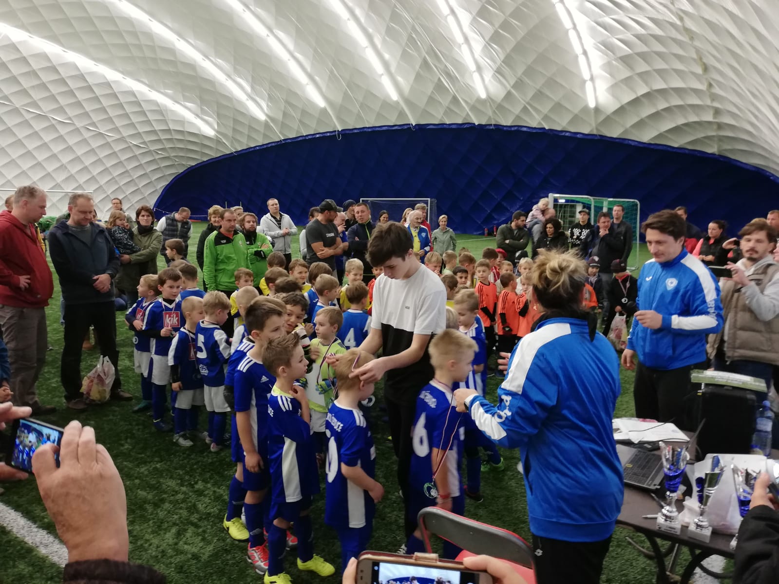 V neděli 10.11.2019 jsme se zúčastnili turnaje v nafukovací hale v Říčanech a to s týmem, který se skládal z dětí z Mladší přípravky a MINI přípravky. Mělo se jednat o tzv. formát hobby, takže jsme byli v očekávání v jak silném složení budou naši soupeři, jelikož náš tým se skládal z dětí spíš mladších a zatím méně zkušených. Hned po prvním kole bylo jasné, že jsou na turnaji i silnější týmy než byl ten náš a tak nám nezbylo nic jiného než bojovat. Týmy se kterými si naše děti byly schopni zahrát vyrovnané partie byly týmy Radošovic, ČAFC a Husinec-Řež. Ostatní byly nad naše síly a tak nás ve vzájemných zápasech přehráli. Nakonec jsme na turnaji uhrály jedno vítězství a jednu remízu a skončili jsme na 7.místě. Turnaj vyhráli děti ze Zelenče a to poměrně zaslouženě. Našim dětem nelze upřít snaha, ale stále je nutné, aby sbírali cenné zkušenosti na dalších turnajích. Ve většině zápasů nás svými zákroky opět podržel Maty Němec, který si myslím, že postupně roste ve velmi kvalitního gólmana. Na trénincích se nadále budeme věnovat pilování střelby a aktivnímu/koncentrovanému zaujetí při tréninkových cvičeních, aby je pak kluci a holky využili v poměření s našimi soupeři.